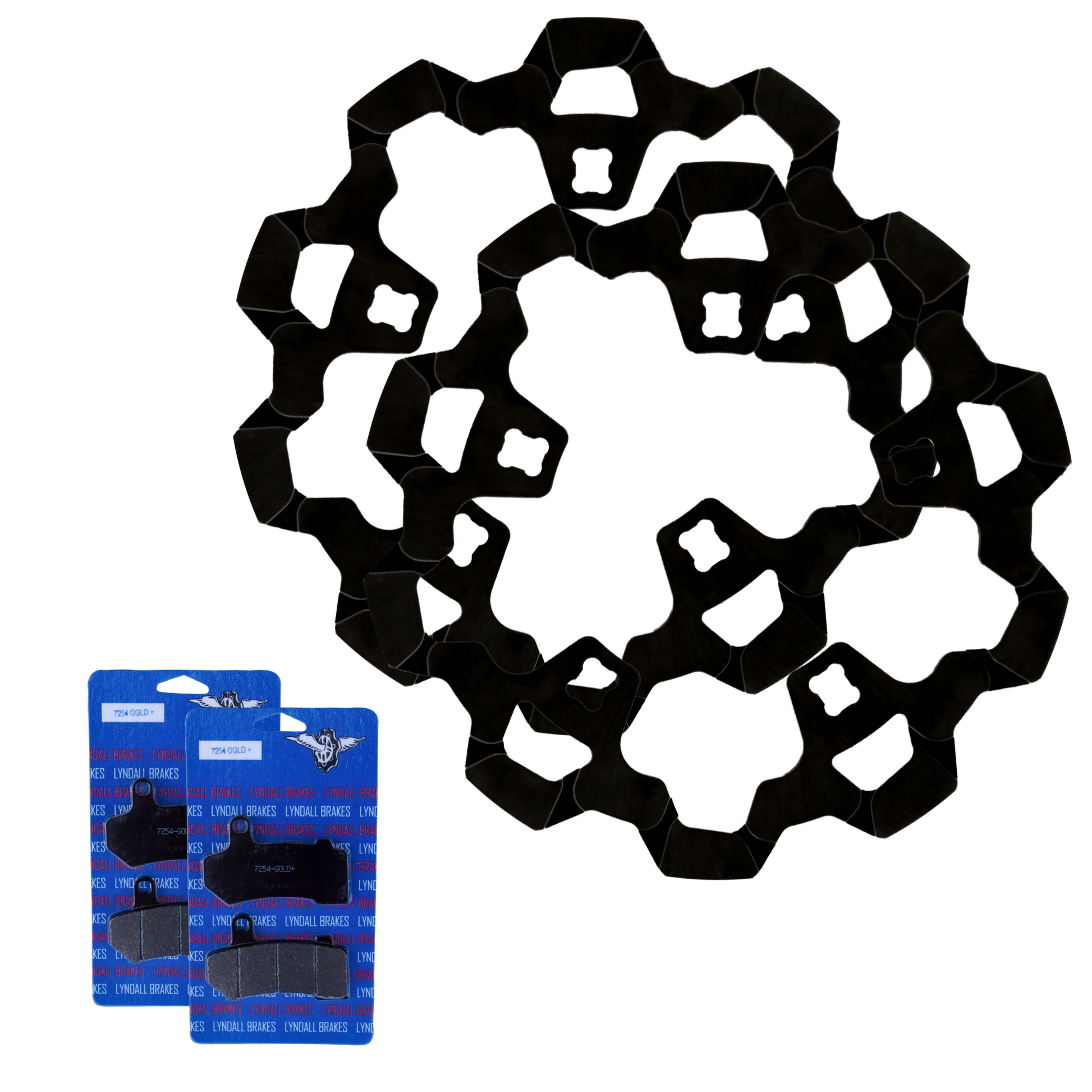 Lyndall Bow-Tie cut rotors are our newest design. These are similar to the Crown Cut design, but with significantly less weight and better outgassing. Our Bow-Tie cut friction rings are also designed to provide better stopping power. By reducing the surface area where the brake pads make contact with the friction ring, clamping power per square inch is increased.