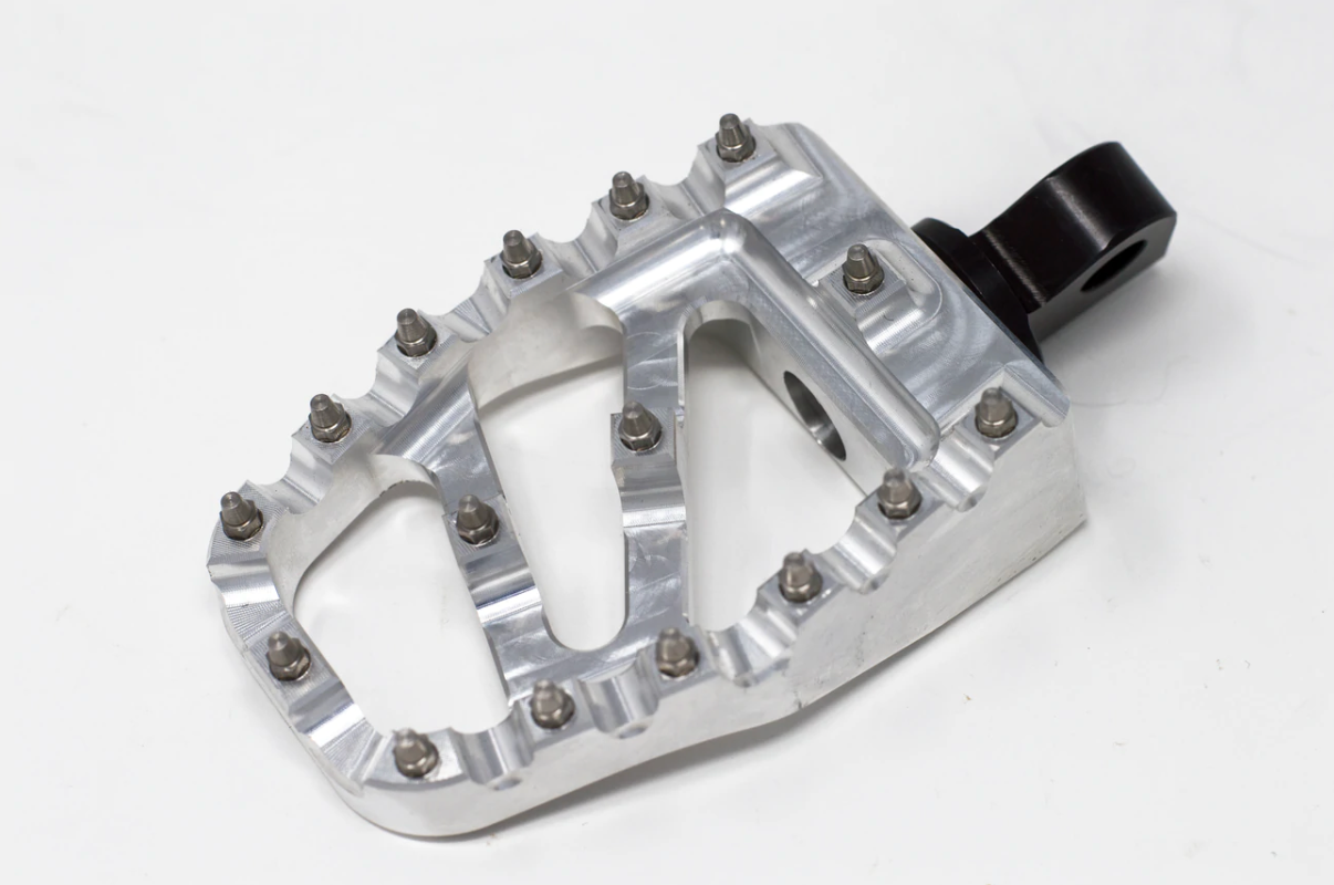 Our MX Pegs are made from 6061 T6 alloy aluminum by CNC machining. These materials are up to 50% Lighter than most stock foot pegs. Color anodizing surface treatment helps improve the corrosion resistance and gives a badass custom look. Full 360 degree foot peg rotation makes these foot pegs perfect for whatever riding style you prefer. The comfortable serrated foot surface area gives you a wider area for your feet and provide a good bite on the bottom of your shoe. All fastener are made form stainless steel for wear-resisting and resisting corrosion.
