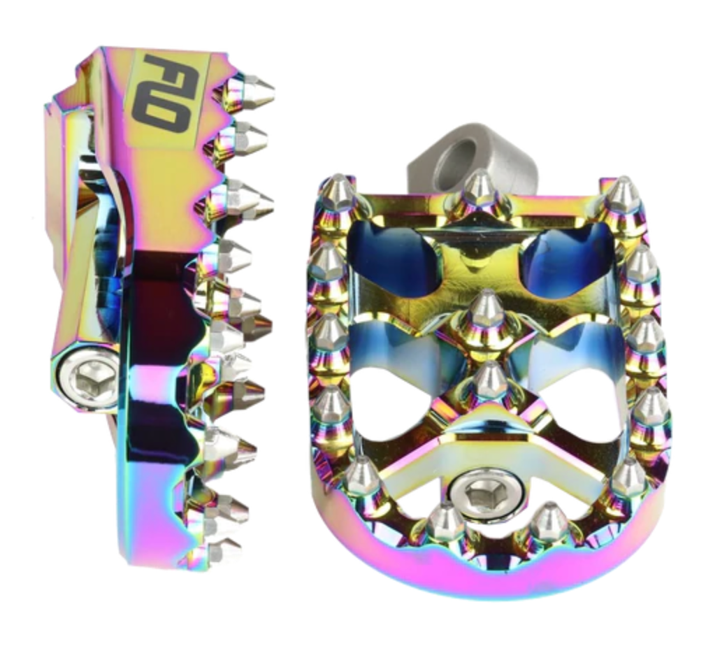 Foot pegs are possibly the most over looked parts on a bike but one of the most important parts. No matter how much power your bike makes, it means nothing if there is no control of the bike . You probably haven't given much consideration to you're footpegs before, but pretty much all professional AMA  supercross , motorcross  and off-road riders ride go with aftermarket footpegs for a wider platform, more grip and overall control of the bike .